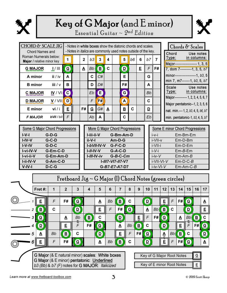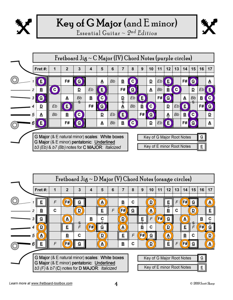 Both let you see how a key’s chords and scales are built, and where to find the notes all over these instruments: