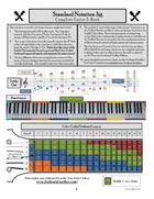 Standard Notation Jig: This tool comes from page 8 of the Complete Guitar Edition. You can use it to see how the notes of a guitar match up with the notes of a piano. You can use it to see which notes are in the same octave on different strings (any notes that have the same colored background). If you're interested in using sheet music to play a melody, you can also use it to see where the notes on a treble clef are found all over the fretboard.